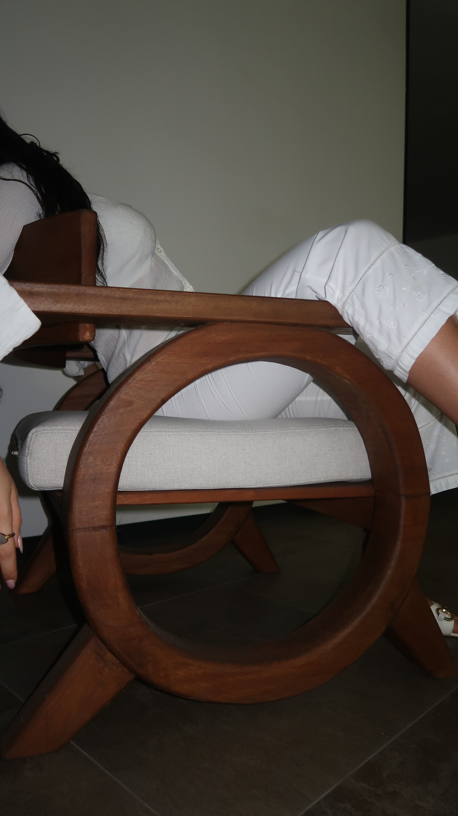The Halo lounge Chair is a sculptural statement rooted in tradition and elevated by modern design. Handcrafted with rich, solid teak wood and smooth, flowing curves, this piece celebrates the artistry and soul of West African-inspired craftsmanship.